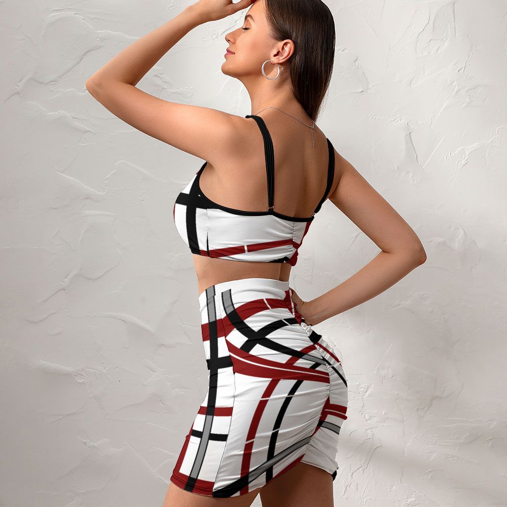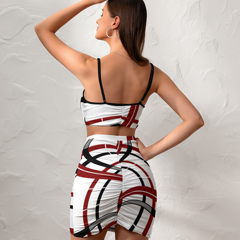 This two-piece outfit features a sleeveless tank and a bodycon mini skirt with a high-waisted, wrap hem and a unique pleated design on the back. It's perfect for any occasion, from casual daily wear to going out, clubs, parties, and even vacations.
