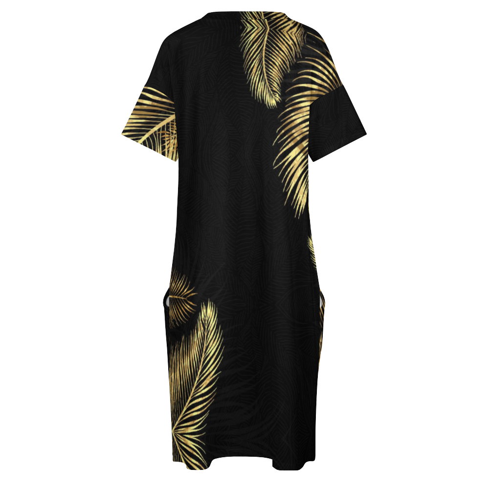 Custom Women's V-neck Loose Dress Fashion Skirts with Pockets